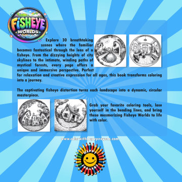 Welcome to Fisheye Worlds, where every scene is a captivating journey through a curved lens. This unique coloring book features 30 original illustrations that transform everyday places into extraordinary, circular panoramas. Discover the magic of a fisheye perspective as you color bustling city squares, serene forest groves, iconic buildings, and breathtaking landscapes—all wrapped into mesmerizing, immersive spheres.